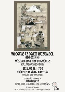 Válogatás az egyedi rajzaimból (1961-2025-ig) – Mészáros Imre grafikusművész kiállításának megnyitója 2026. március 19. 17.00 órakor a Krúdy Gyula Városi Könyvtárban.