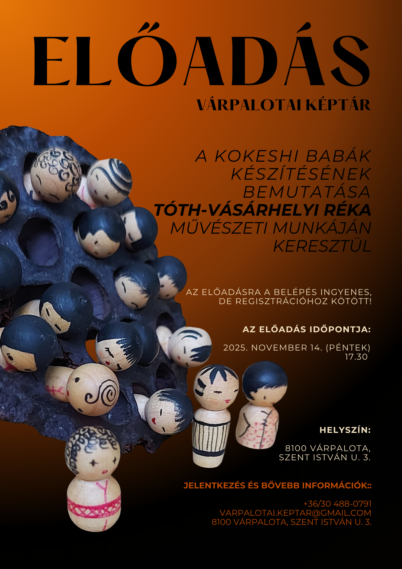 Keresés: Legutóbbi bejegyzések ZÁRVA tartunk 2025. november 1-jén (Thury-vár, Várpalotai Képtár, Fodor Sára Tájház, Krúdy Gyula Városi Könyvtár) Előadás – Kokeshi babák készítésének bemutatása a Várpalotai Képtárban Mazsola és Tádé gyermekműsor Hufnágel Erika grafikusművész Rezgések című kiállításának megnyitója Programajánló Halloweenra! Legutóbbi hozzászólásokArchívum 2025. október 2025. szeptember 2025. augusztus 2025. július 2025. június 2025. május 2025. április 2025. március 2025. február 2025. január 2024. december 2024. november 2024. október 2024. szeptember 2024. augusztus 2024. július 2024. június 2024. május 2024. április 2024. március 2024. február 2024. január 2023. december 2023. november 2023. október 2023. szeptember 2023. július Kategóriák Uncategorized Meta Bejelentkezés Bejegyzések hírcsatorna Hozzászólások hírcsatorna WordPress Magyarország Dátum nov 14 2025 Idő 17:30 - 19:00 Előadás – Kokeshi babák készítésének bemutatása a Várpalotai Képtárban Esemény megosztása + Google Naptárba mentés + iCal / Outlook exportálás 00 napok 00 órák 00 percek 00 másodpercek