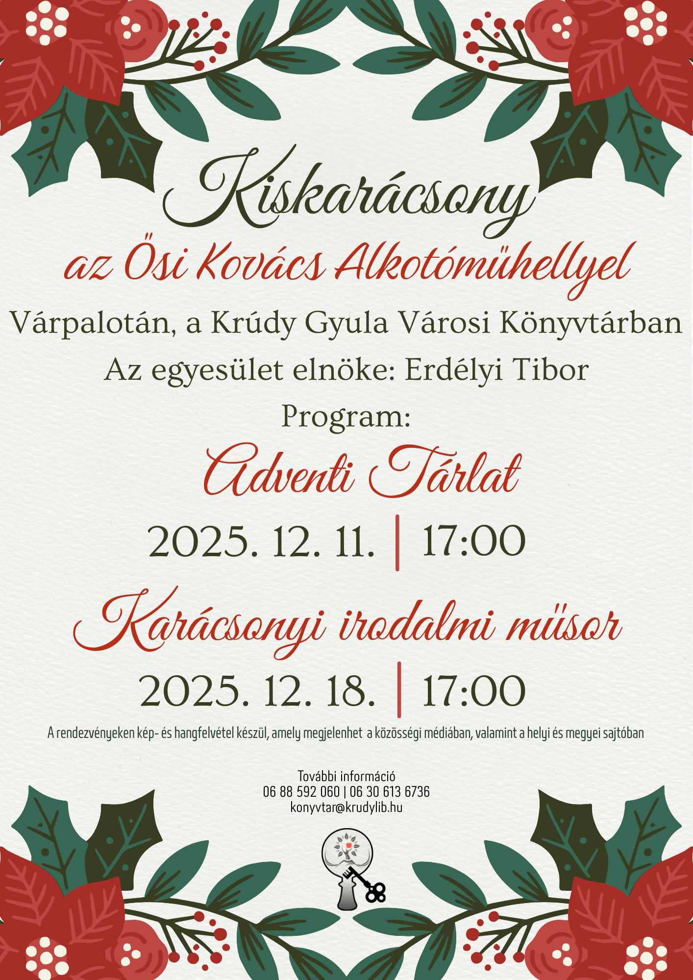 Keresés: Legutóbbi bejegyzések Szabó György szobrászművész – LEVITÁCIÓ II. című kiállításának megnyitója A kommunista diktatúrák áldozatainak emléknapja Várpalotán Palotai Mustra történelmi várjáték Romantikus Valentin-napi séta a Thury-várban R. Kocsy Tamás – Kék rozsda című kiállítás megnyitója Legutóbbi hozzászólásokArchívum 2026. március 2026. február 2026. január 2025. december 2025. november 2025. október 2025. szeptember 2025. augusztus 2025. július 2025. június 2025. május 2025. április 2025. március 2025. február 2025. január 2024. december 2024. november 2024. október 2024. szeptember 2024. augusztus 2024. július 2024. június 2024. május 2024. április 2024. március 2024. február 2024. január 2023. december 2023. november 2023. október 2023. szeptember 2023. július Kategóriák Uncategorized Meta Bejelentkezés Bejegyzések hírcsatorna Hozzászólások hírcsatorna WordPress Magyarország Dátum dec 11 2025 Lejárt! Idő 17:00 - 18:00 Kiskarácsony- adventi tárlat Esemény megosztása + Google Naptárba mentés + iCal / Outlook exportálás