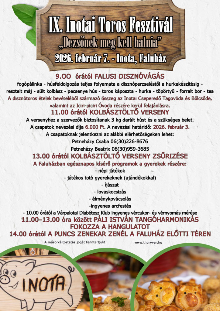 IX. Inotai Toros Fesztivál 2026. február 7-én. Sok szeretettel várunk minden kedves érdeklődőt!
